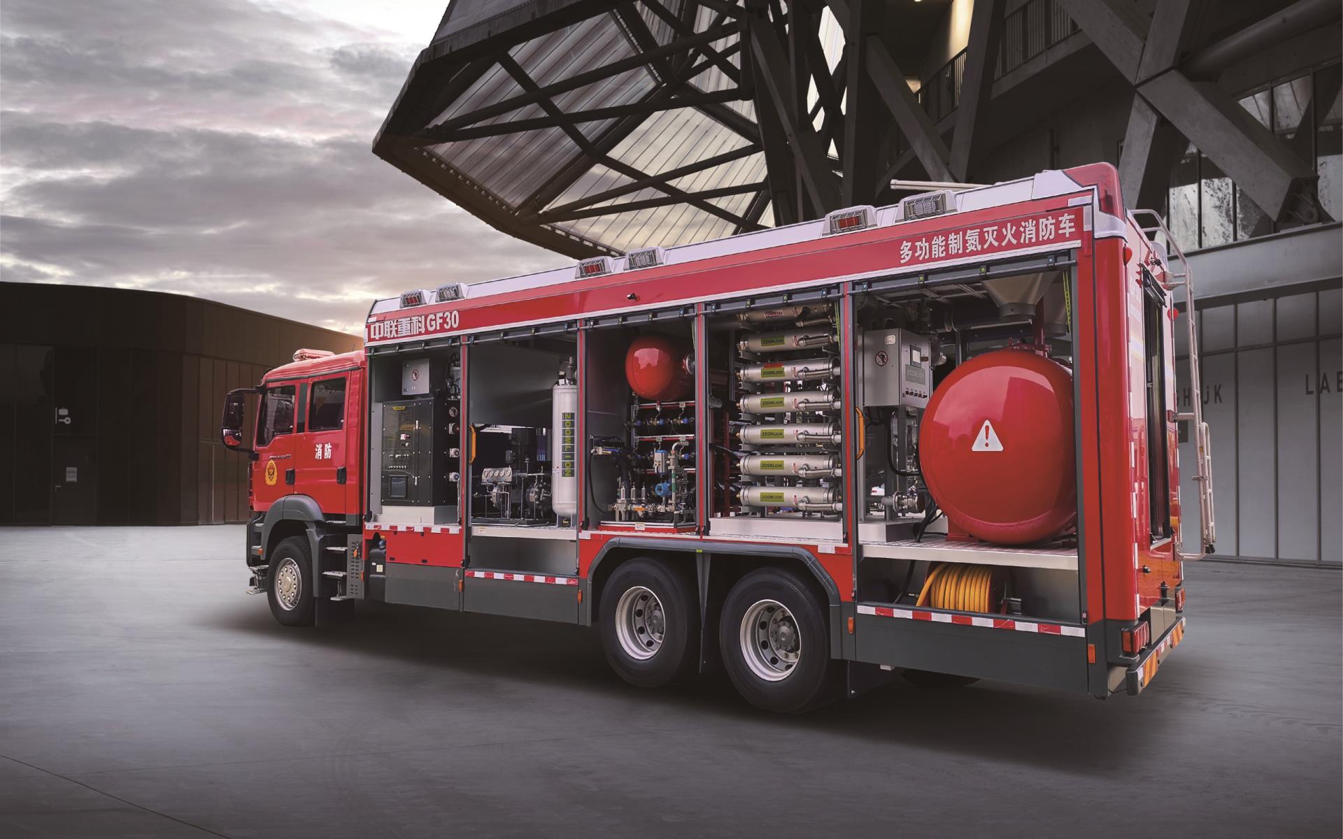 ▲中聯(lián)重科“大流量持續(xù)制氮及粉劑復(fù)合噴射滅火裝備”