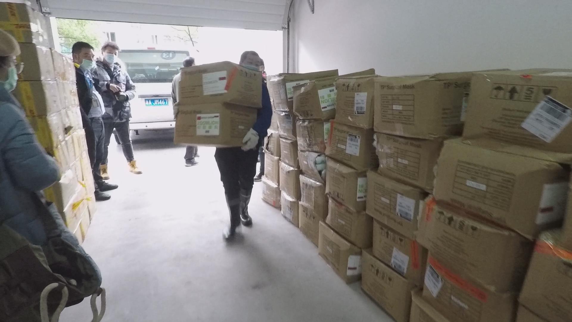 △由印尼、科威特采購而來的逾50萬只口罩抵達長沙