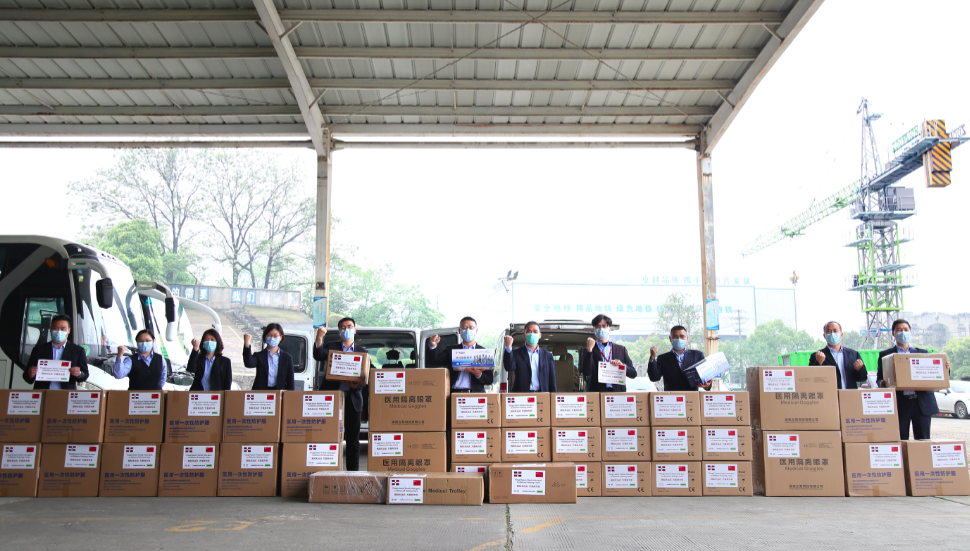 △中聯(lián)重科員工正在搬運(yùn)疫情防護(hù)物資