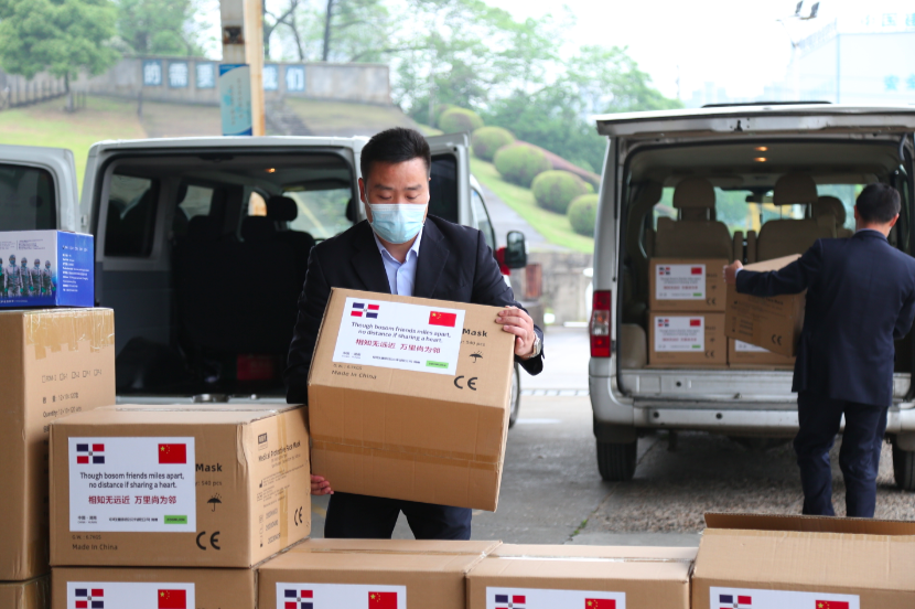 4月21日,湖南省委省政府調(diào)撥中聯(lián)重科向友好國(guó)家多米尼加捐贈(zèng)的疫情防護(hù)物資從長(zhǎng)沙起運(yùn),將火速發(fā)往多米尼加,助力當(dāng)?shù)匦鹿诜窝滓咔榉雷o(hù)及救治工作。