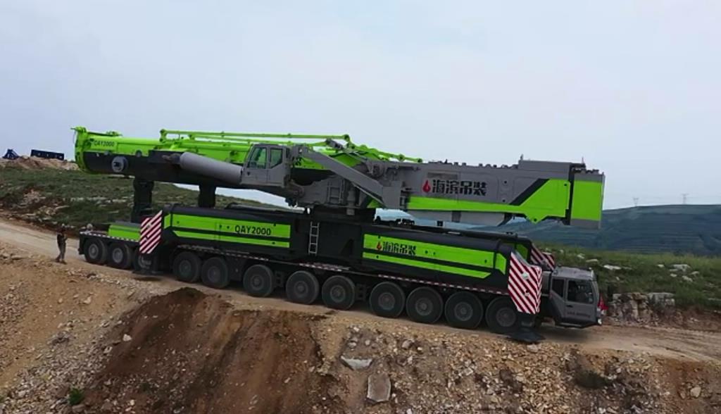△在坡度為33%的工況下,中聯(lián)重科QAY2000全地面起重機(jī)重載轉(zhuǎn)場
