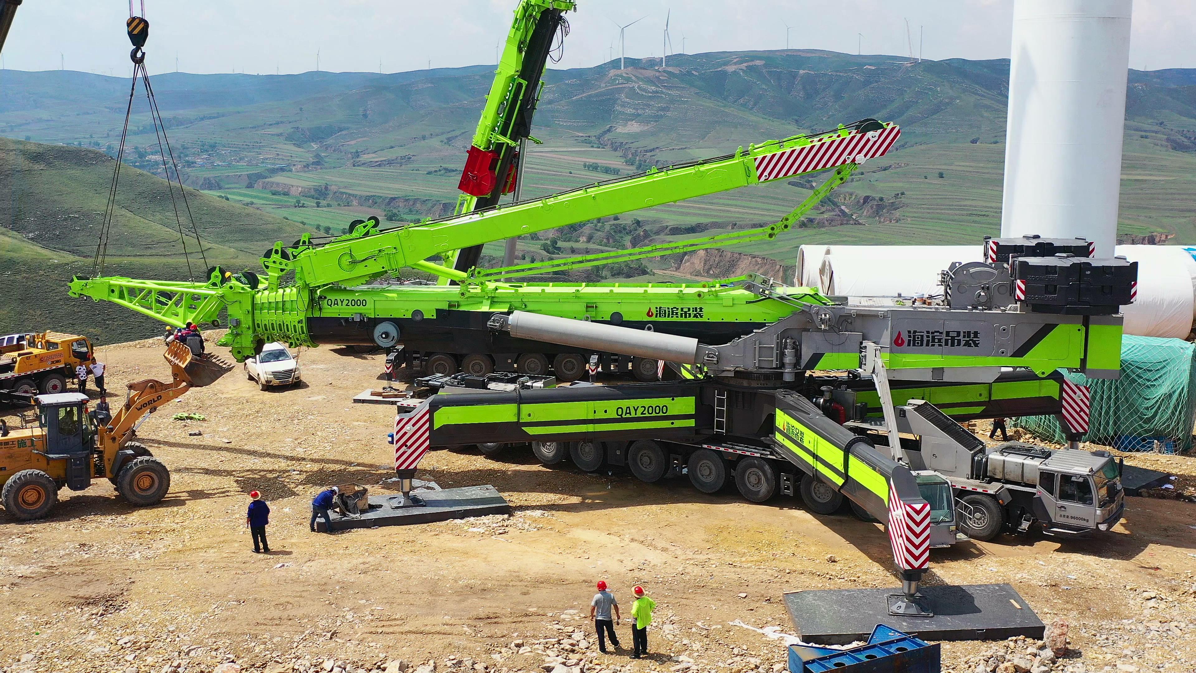 朔州市平魯區(qū)三面環(huán)山、海拔較高,素有“朔北雄城,塞外天險”之稱。近年來,隨著清潔能源發(fā)展的壯大,朔州平魯以豐富的風(fēng)力資源受到了風(fēng)電項(xiàng)目的重點(diǎn)關(guān)注,一座座風(fēng)力發(fā)電塔拔地而起傲立山頂,成為了平魯壯觀的風(fēng)景線。正在建設(shè)中的山西華電朔州平魯東平太100MW風(fēng)電安裝項(xiàng)目就坐落于此。而負(fù)責(zé)該項(xiàng)目31座風(fēng)力發(fā)電塔組裝工作的設(shè)備,正是中聯(lián)重科QAY2000全地面起重機(jī)。???