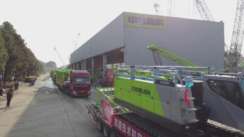 △2月18日,中聯(lián)重科開門紅當天,十余臺履帶起重機明星產(chǎn)品起運發(fā)往全球