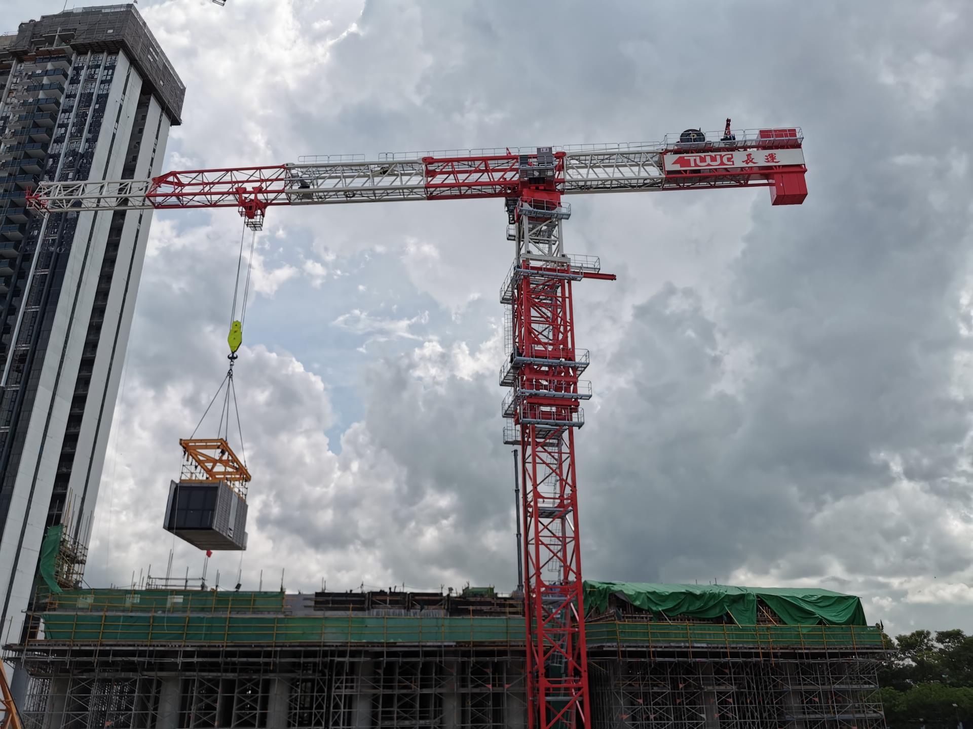隨著建筑方式的創(chuàng)新,新加坡市場對參建設(shè)備的性能需求也發(fā)生了變化。中聯(lián)重科建筑起重機械公司亞特區(qū)服務(wù)工程師姚建軍介紹道:“新加坡從2017年開始推出使用PPVC建筑方式,所有預(yù)制件的單件重量超過30噸,部分預(yù)制件單件重量甚至達到40多噸,導(dǎo)致整個市場對塔機需求發(fā)生了巨大變化,對塔機的起重性能及安全性有了更多新要求,逐漸大量使用起重力矩1000噸米及以上的平頭塔機?!?/span>