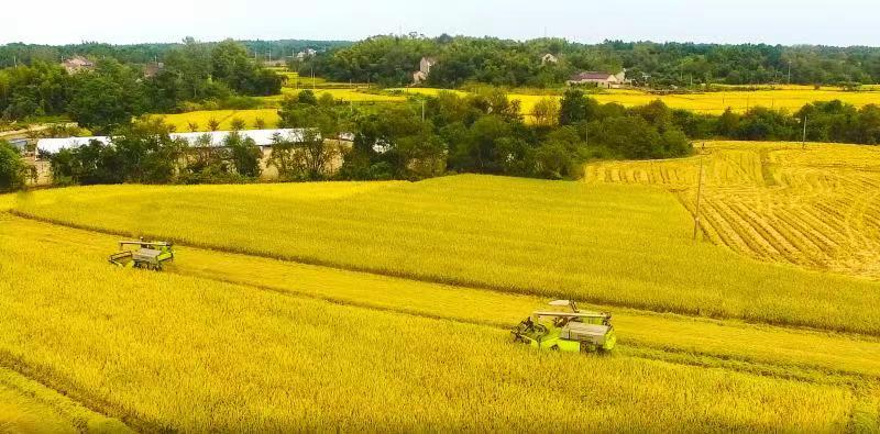 秋高氣爽 星星綠意點綴金黃稻田