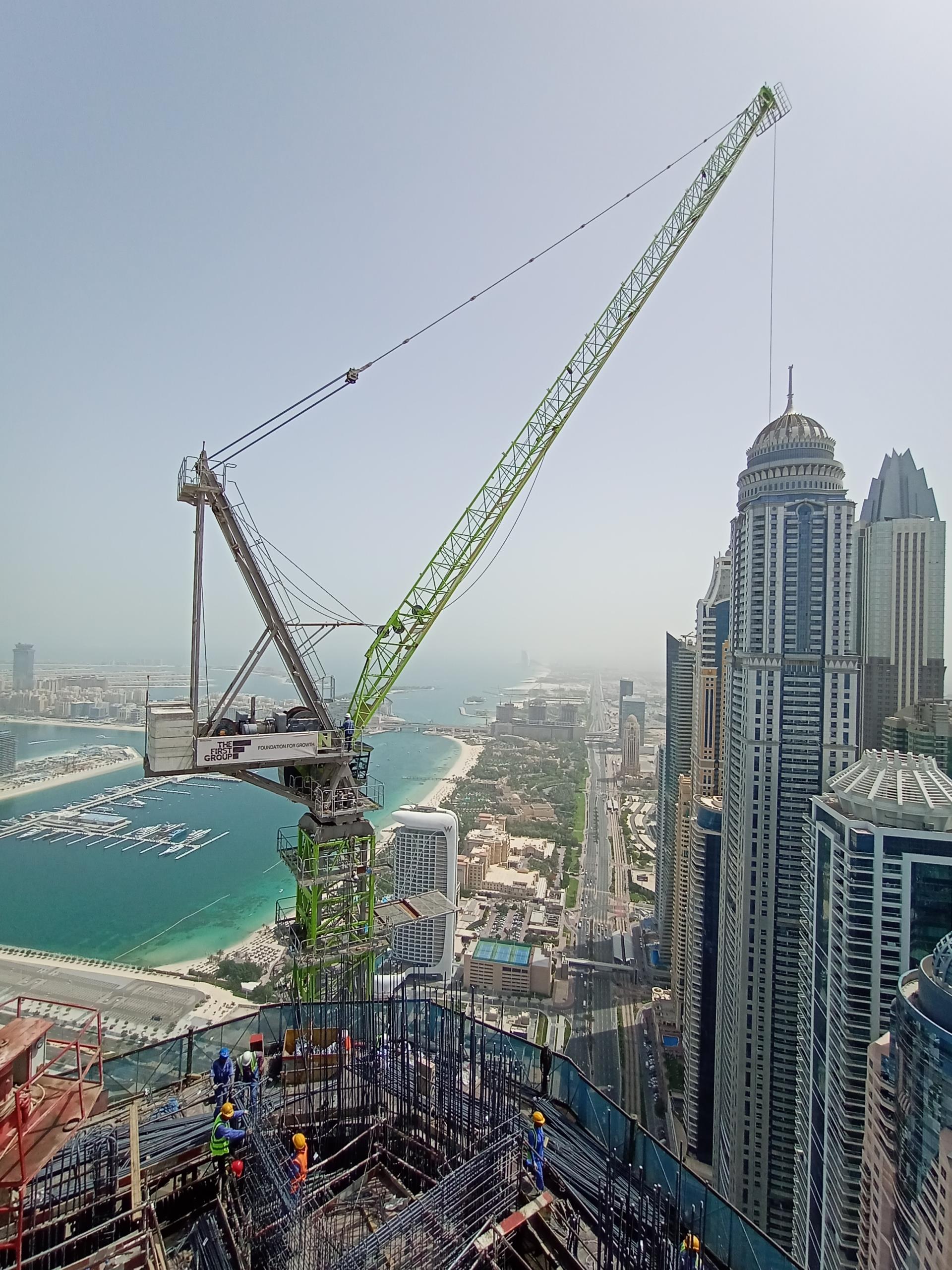 中聯(lián)重科建筑起重機(jī)械分公司中東非洲區(qū)副總經(jīng)理任杰介紹道:“該項(xiàng)目三面臨路,施工場(chǎng)地非常狹窄,并且地處迪拜碼頭區(qū)域,風(fēng)力非常大。而且項(xiàng)目**大的核心筒墻體外墻厚度達(dá)到1.9米,隨著建筑的升高,核心筒的厚度也在不斷變化,這對(duì)于核心筒墻體中間電梯井內(nèi)塔機(jī)的安裝也是一個(gè)極大的挑戰(zhàn)?;谶@些情況,客戶選擇了在安全性、可靠性和起重性能等方面都具有顯著優(yōu)勢(shì)的中聯(lián)重科L250-20大噸位動(dòng)臂塔機(jī)?!?img src="/Upload/image/20220926/20220926091054_6999.jpg" alt="" />