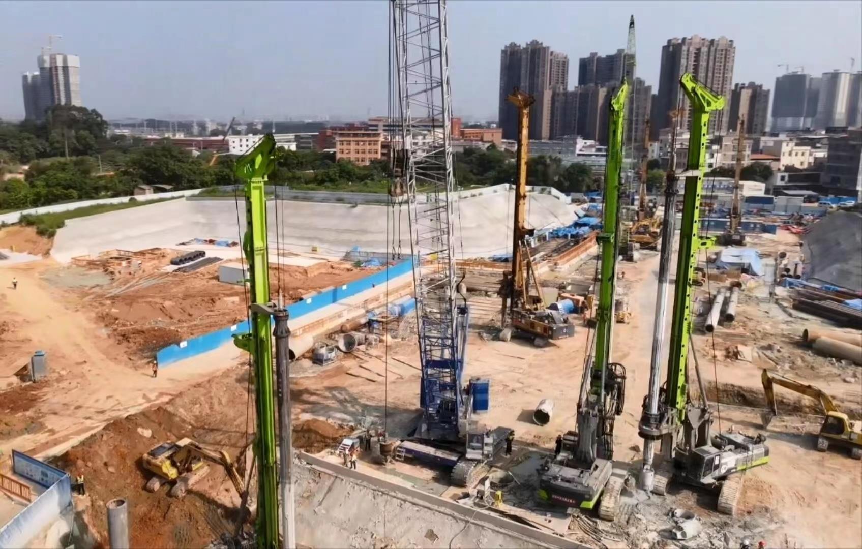 先建地上火車站,再挖地下軌道交通線。在廣州“增城火車站綜合交通樞紐配套城市軌道交通車站土建預(yù)留工程”施工現(xiàn)場(chǎng),中聯(lián)重科的旋挖鉆機(jī)和全回轉(zhuǎn)鉆機(jī)正用新工法助力項(xiàng)目建設(shè)。這種工法可以在不影響地表火車正常運(yùn)行的情況下,進(jìn)行地下建筑的建設(shè),極大程度消除了建設(shè)施工對(duì)人們高鐵出行造成的不便。