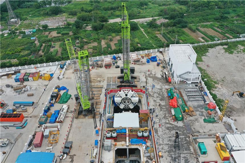 據(jù)了解,此次項(xiàng)目吊裝的“申通號(hào)”盾構(gòu)機(jī)總長(zhǎng)為148米,采用常壓刀盤(pán)設(shè)計(jì)。盾構(gòu)機(jī)刀盤(pán)直徑有13.5米,重達(dá)308噸,由一個(gè)中心塊、6個(gè)主刀臂和6個(gè)輔刀臂焊接拼裝組成。中聯(lián)重科兩臺(tái)履帶起重機(jī)吊裝“申通號(hào)”盾構(gòu)機(jī)下井,為其完成崇明線南港越江段區(qū)間的掘進(jìn)施工提供助力。全長(zhǎng)7.74千米的南港區(qū)間隧道貫通后,將成為“上海軌道穿越長(zhǎng)江**一隧”。