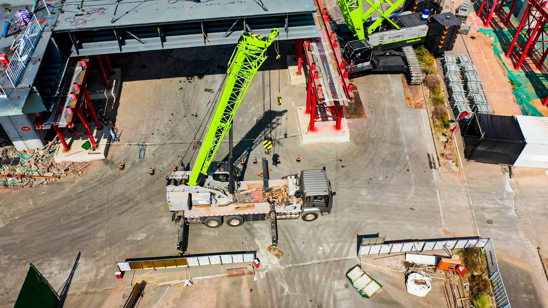 ▲中聯(lián)重科ZTC250A5-2PE插電版起重機正在助力項目建設(shè)