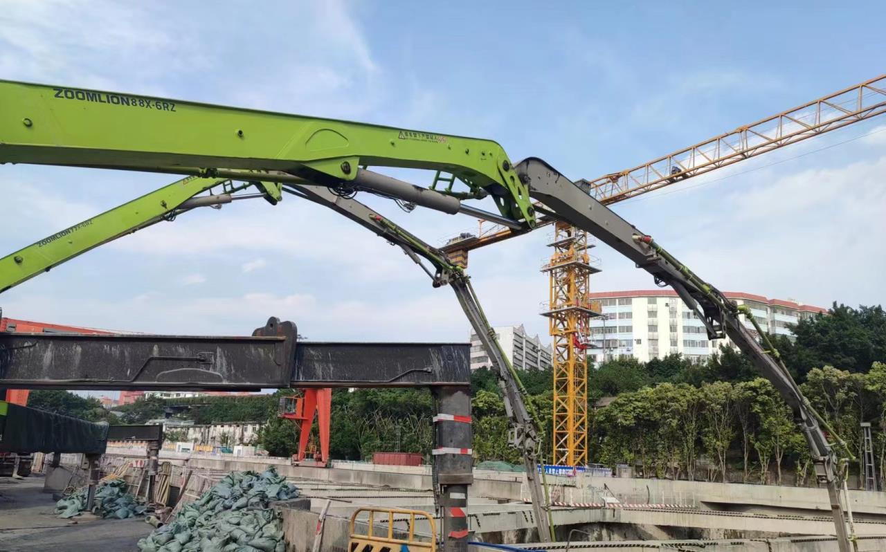 作為廣州地鐵集團“總部級”風(fēng)險重點管控點之一,該站共需澆筑混凝土約10萬方,為確保施工質(zhì)量和施工進度,同時嚴格落實風(fēng)險管控,項目方選用了中聯(lián)重科“凌云”系列67米、59米長臂架泵車承擔任務(wù)。