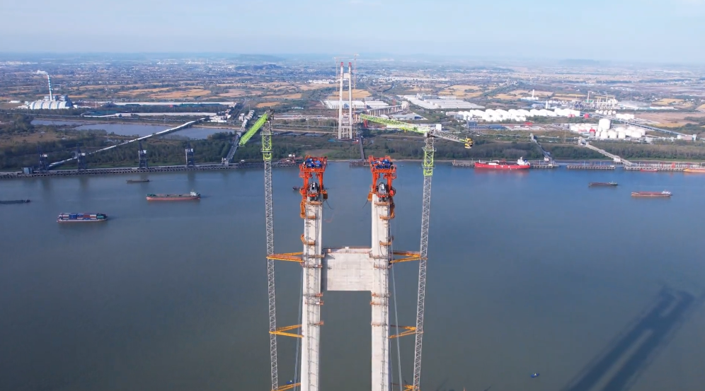 ▲中聯(lián)重科塔機(jī)助力南京仙新路過(guò)江通道施工(圖片來(lái)源于中交二航局)