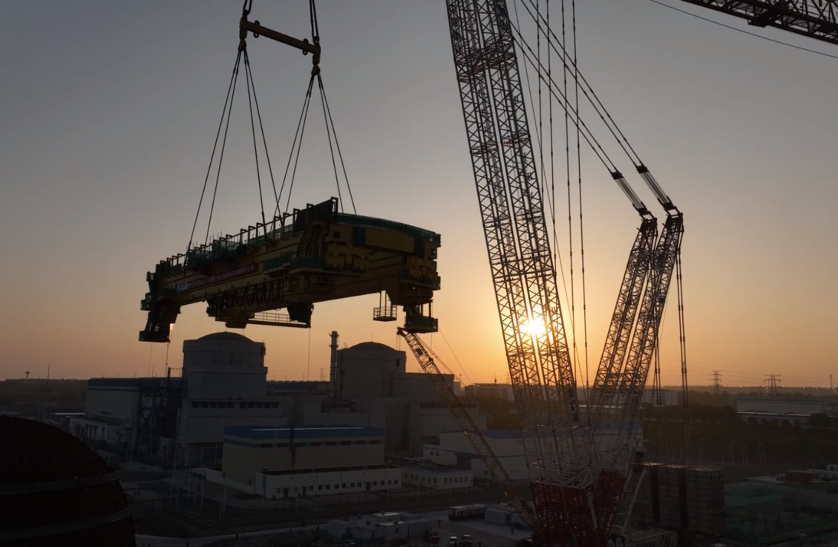 據(jù)了解,環(huán)吊是安裝在反應(yīng)堆廠房?jī)?nèi)上部位置的重型起重設(shè)備,在核電廠建造階段,環(huán)吊用于安裝反應(yīng)堆廠房?jī)?nèi)的重型設(shè)備,如蒸汽發(fā)生器、反應(yīng)堆壓力容器、穩(wěn)壓器、堆內(nèi)構(gòu)件等設(shè)備,在核電廠運(yùn)行階段,環(huán)吊用于反應(yīng)堆停堆換料和反應(yīng)堆廠房?jī)?nèi)設(shè)備維修所需的各種服務(wù)。