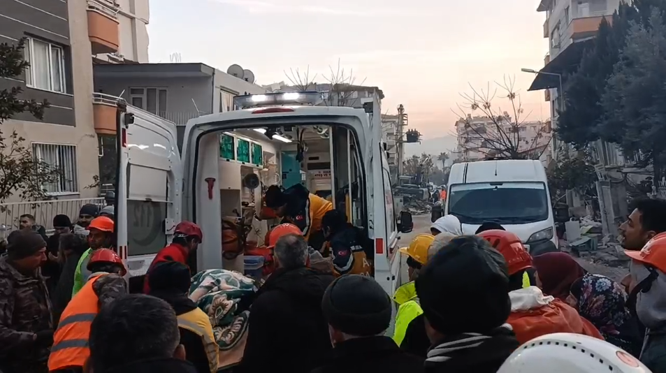 ▲當?shù)貢r間2月10日11時45分,中聯(lián)重科救援隊協(xié)助救出一名被困婦女