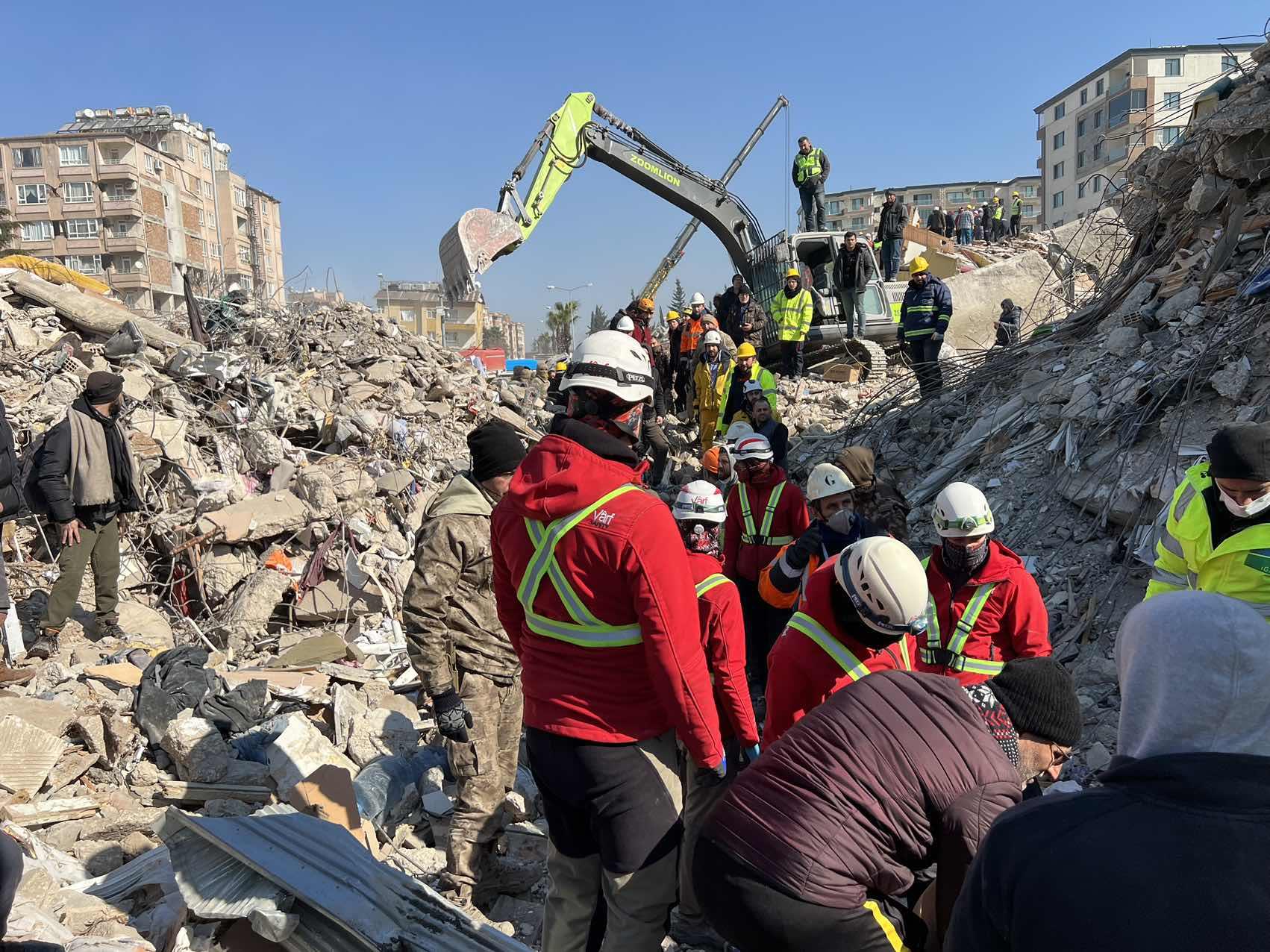 隨著救援行動有組織有序開展,中聯(lián)重科參與救援的力量也不斷壯大。目前,在土耳其地震災區(qū)已有挖掘機、履帶吊、汽車吊等多種類型的中聯(lián)重科設備參與救援。經(jīng)過三天三夜的持續(xù)奮戰(zhàn),中聯(lián)重科救援隊在哈塔伊省已救出30多名被困者。