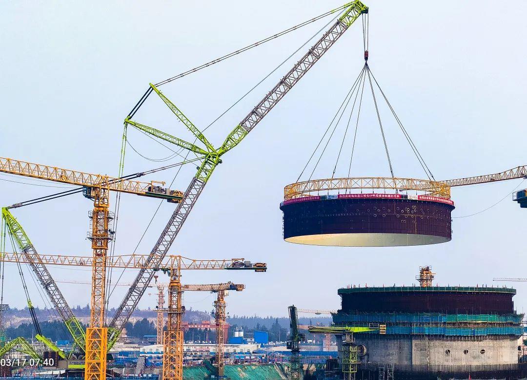 △中聯(lián)重科2000噸履帶起重機(jī)正在吊裝(圖片來(lái)自“海南核電”)