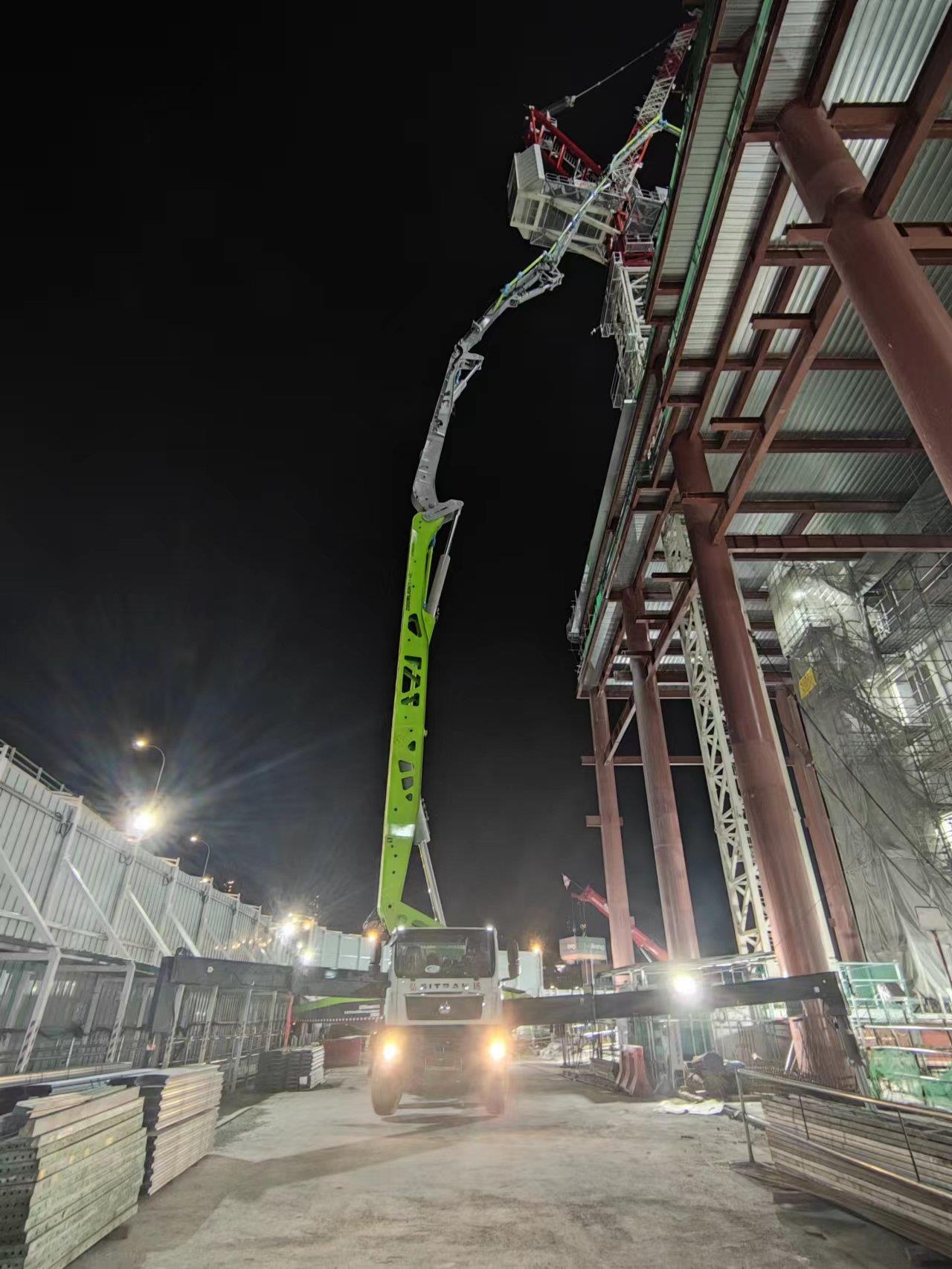 隨著“一帶一路”合作不斷加深,近年來,中聯(lián)重科混凝土機(jī)械在海外聲量大漲,實(shí)現(xiàn)多次批量交付。日前,在新加坡巴實(shí)潘江港Hyundai Liftcore商業(yè)寫字樓項(xiàng)目上,夜色中極光綠的長臂格外亮眼。這是中聯(lián)重科首臺(tái)出口海外的70米泵車,創(chuàng)下了國內(nèi)出口新加坡**長臂架泵車紀(jì)錄。