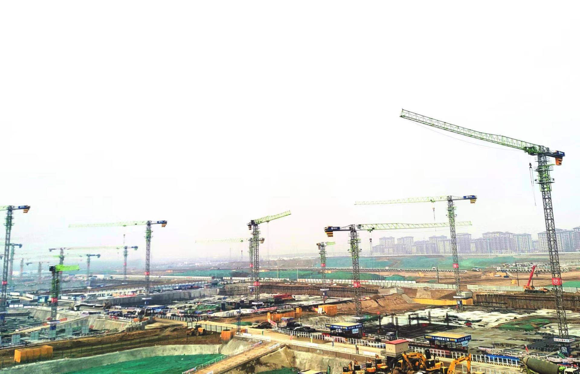 ▲中聯(lián)重科全新R代塔機挺立“未來之城”雄安