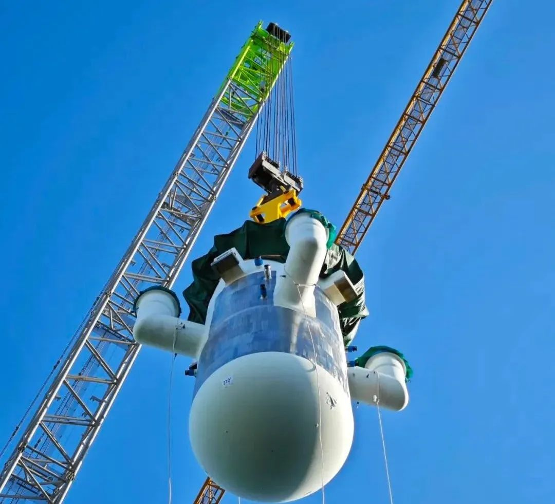 8月10日,隨著現(xiàn)場(chǎng)一聲令下,玲龍一號(hào)反應(yīng)堆核心模塊被中聯(lián)重科2000噸履帶式起重機(jī)高高吊起,向著核島方向移動(dòng)并成功精準(zhǔn)就位。此次吊裝,是玲龍一號(hào)核島設(shè)備安裝關(guān)鍵路徑上的**一個(gè)里程碑節(jié)點(diǎn),也是核反應(yīng)堆模塊化制造和安裝的一次“首秀”。在中聯(lián)重科起重機(jī)的助力下,全球核能小型化邁出了歷史性一步,標(biāo)志著我國(guó)在模塊式小型堆建造上走在了世界前列。
