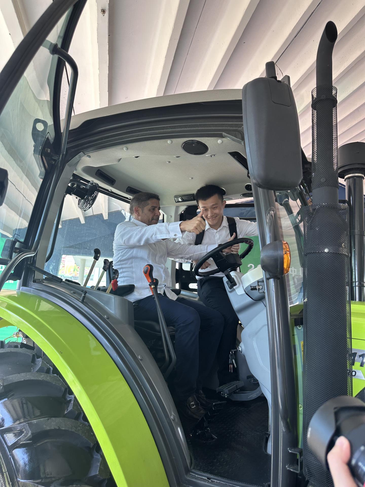 期間,多米尼加農(nóng)業(yè)部部長林博·克魯斯饒有興致地登上中聯(lián)重科RN1104拖拉機駕駛室,他摸了摸方向盤、試了試操作桿,在親自體驗中聯(lián)重科產(chǎn)品品質(zhì)后,他高興地豎起兩個大拇指稱贊道“Muy bien(很好)!”