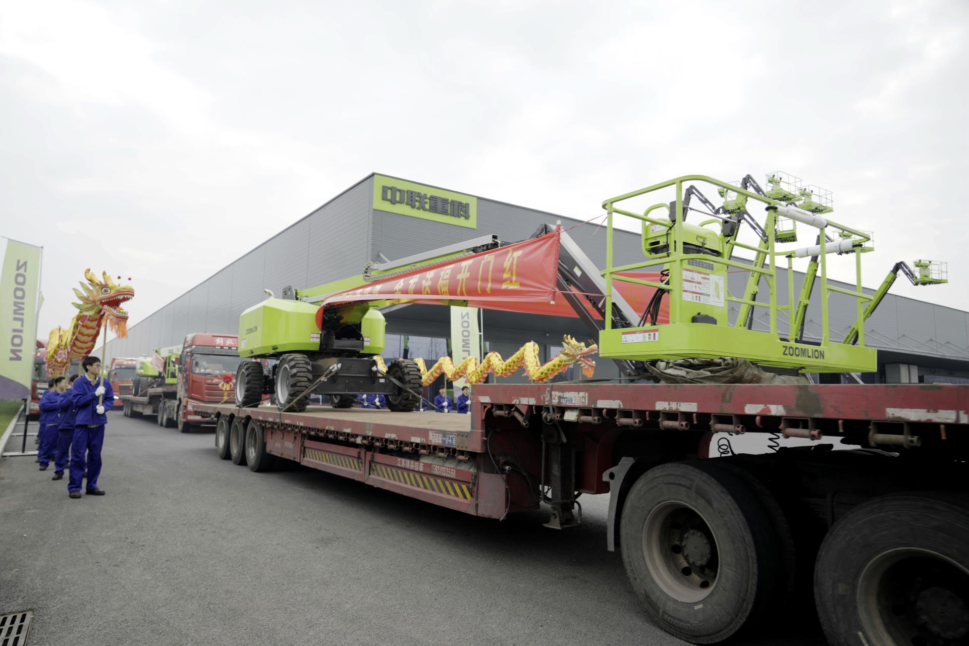 ▲中聯(lián)重科智能高機(jī)的發(fā)車(chē)現(xiàn)場(chǎng)