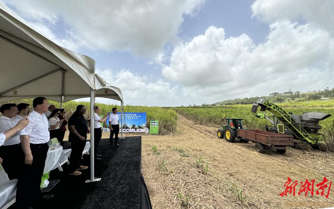 21日當(dāng)天,毛偉明與代表團(tuán)還調(diào)研了中聯(lián)重科與巴巴多斯合作甘蔗基地。在中聯(lián)重科與BAMC農(nóng)機(jī)及智慧農(nóng)業(yè)合作項(xiàng)目現(xiàn)場(chǎng),當(dāng)?shù)剞r(nóng)業(yè)部門負(fù)責(zé)人介紹,由中聯(lián)重科捐贈(zèng)的甘蔗收割機(jī)大大提高了甘蔗收割和秸稈利用效率,“一臺(tái)機(jī)器相當(dāng)于40個(gè)工人,效果‘very good’(非常好)!”毛偉明指出,要充分發(fā)揮湖南農(nóng)機(jī)裝備產(chǎn)業(yè)優(yōu)勢(shì),因地制宜提升農(nóng)機(jī)裝備的機(jī)械化、自動(dòng)化、數(shù)字化水平,研發(fā)打造“甘蔗”版聯(lián)合收割機(jī),以高水平科技創(chuàng)新助推農(nóng)業(yè)國(guó)際合作高水平發(fā)展。