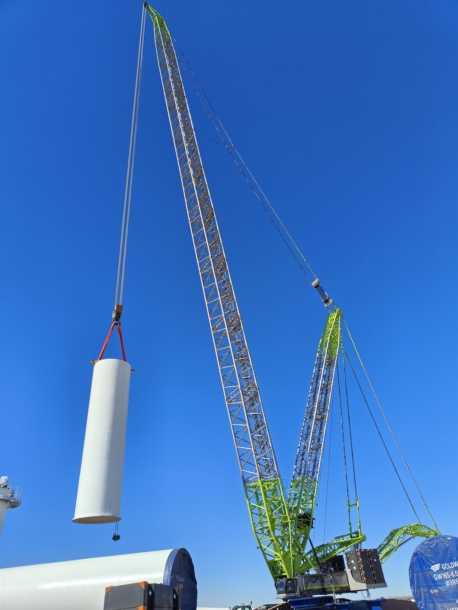 中聯(lián)重科1250噸級履帶起重機(jī)完成交付后,立即投入到當(dāng)?shù)刂攸c(diǎn)風(fēng)電項(xiàng)目建設(shè)中。當(dāng)?shù)貢r間上午10:05分,在項(xiàng)目工地上,隨著現(xiàn)場指揮員一聲令下,中聯(lián)重科履帶起重機(jī)將重達(dá)107噸的風(fēng)機(jī)塔筒平穩(wěn)吊起,然后將塔筒順利安裝在基座上,整個吊裝過程銜接緊密、井然有序,為后續(xù)風(fēng)機(jī)的安裝工作奠定了堅(jiān)實(shí)基礎(chǔ)。中聯(lián)重科的高品質(zhì)智造裝備以出色的實(shí)戰(zhàn)表現(xiàn),贏得非洲客戶的高度評價。