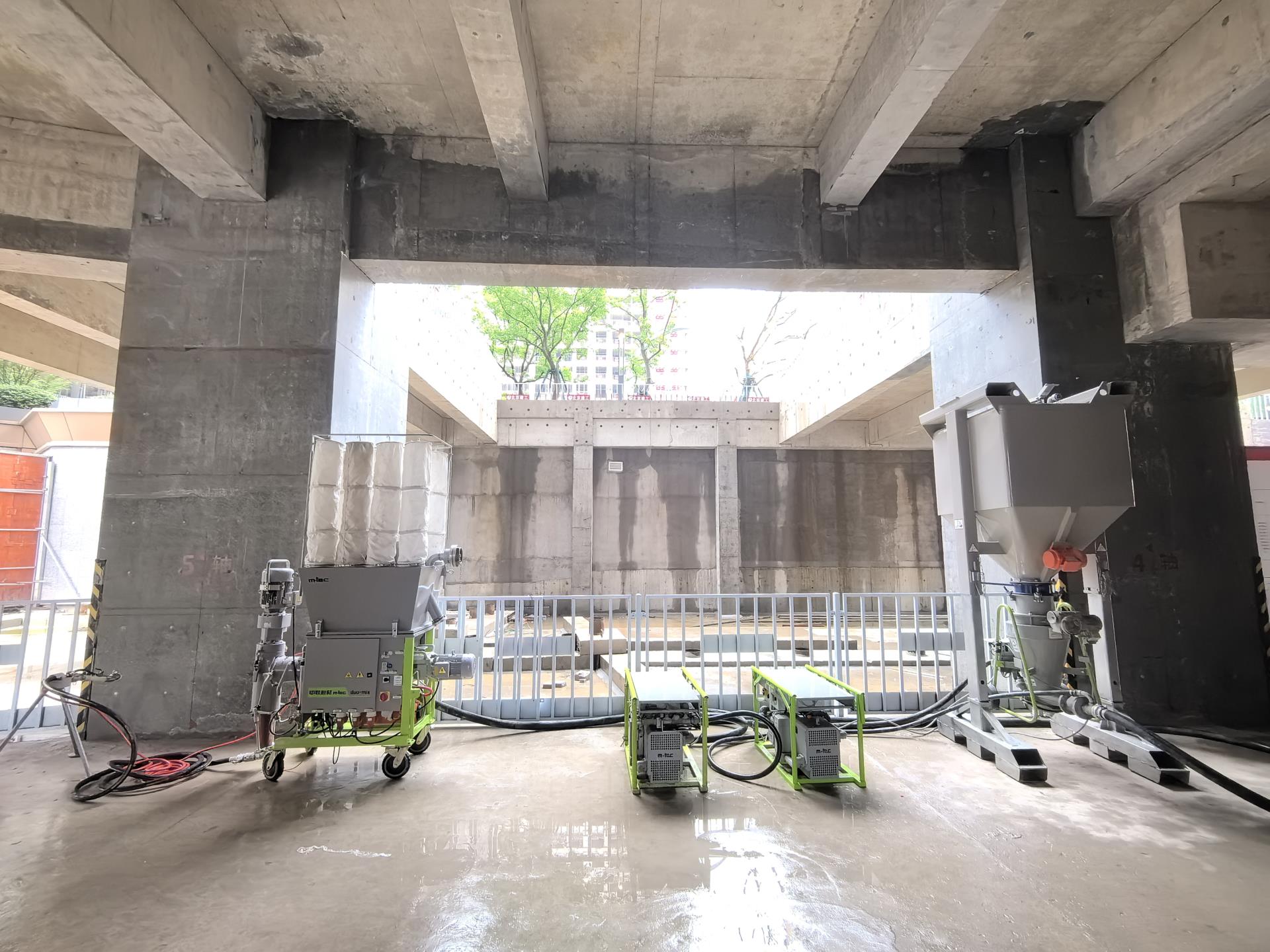 據(jù)介紹,中聯(lián)重科為項目量身打造的墻面機(jī)械化施工解決方案——“可機(jī)施水泥基輕質(zhì)抹灰砂漿+GDP/Duomix+機(jī)械化施工的新工藝工法”,在多環(huán)節(jié)運(yùn)用傳感器聯(lián)動,實(shí)現(xiàn)了“智能化運(yùn)作,一鍵啟?!保┕がF(xiàn)場無粉塵排放,無干粉濕漿落地,無需清洗輸送管道,具有安全、高效、綠色環(huán)保等顯著優(yōu)勢。