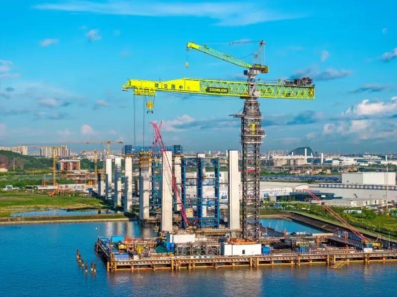 ▲中聯(lián)重科全球**大塔機佇立獅子洋大橋建設現(xiàn)場(圖片來源于公眾號“廣東交通”)