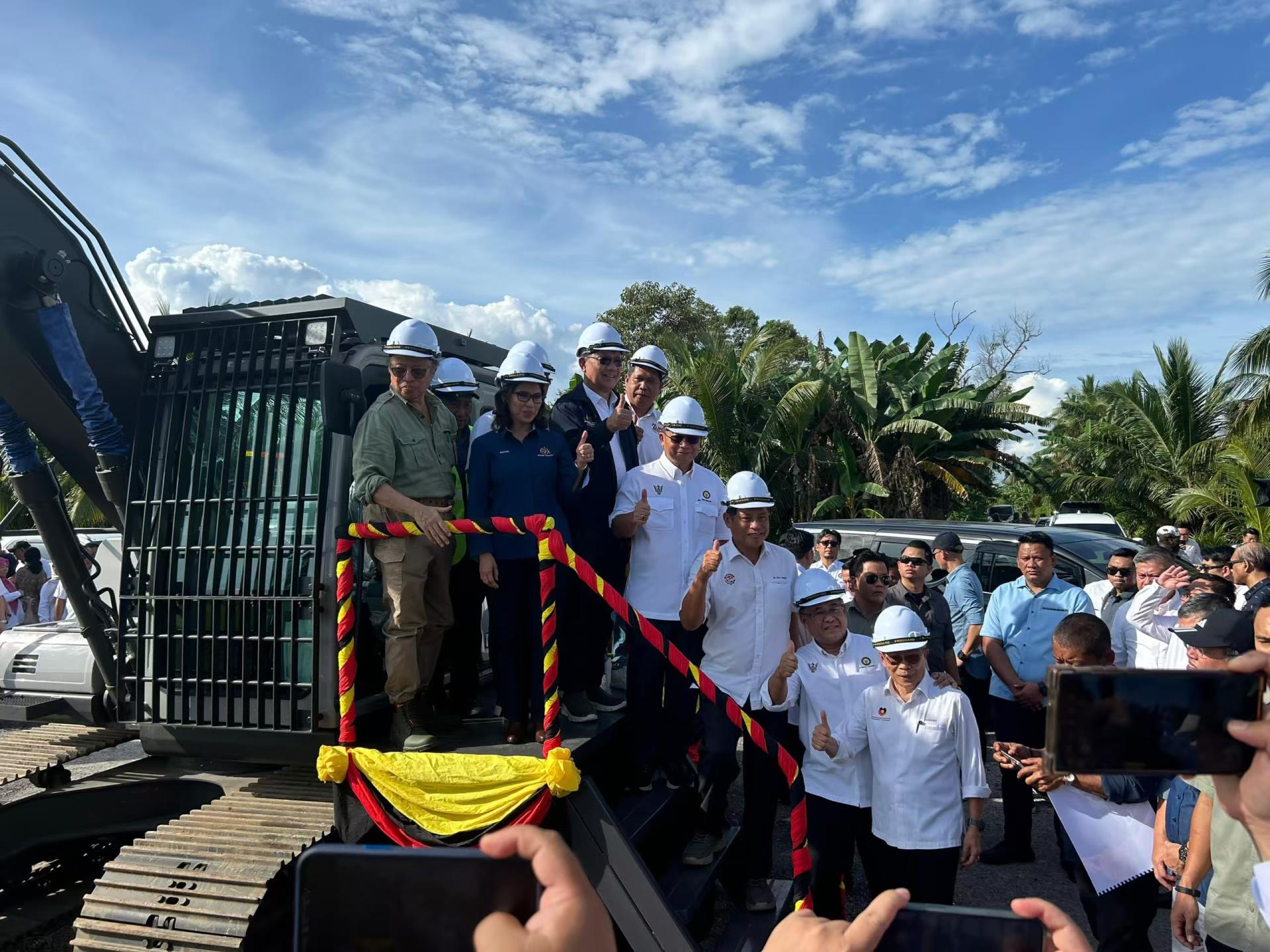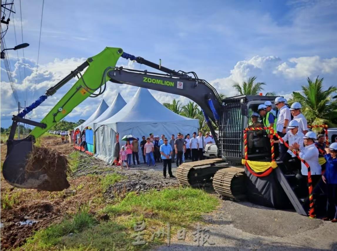 △儀式現(xiàn)場(chǎng)的中聯(lián)重科挖掘機(jī)(圖片來(lái)源:馬來(lái)西亞《星洲日?qǐng)?bào)》)