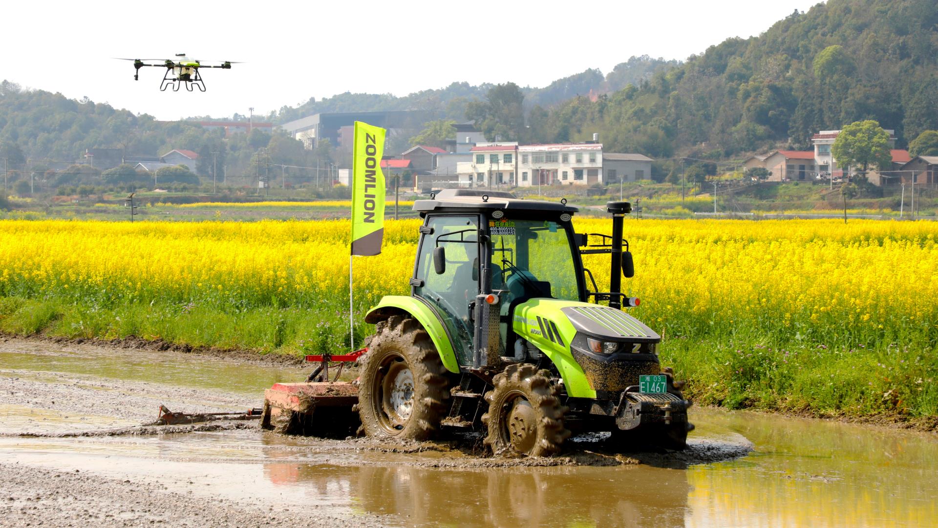 田地間,中聯(lián)重科水田拖拉機(jī)和履帶式旋耕機(jī)開足馬力開展耕整作業(yè),改善土壤結(jié)構(gòu)與肥力,為后續(xù)水稻種植做好準(zhǔn)備;搭載“中聯(lián)智駕”系統(tǒng)的水稻插秧機(jī)按照規(guī)劃線路自動(dòng)行駛,在“北斗”定位技術(shù)的加持下,實(shí)現(xiàn)厘米級(jí)精準(zhǔn)插秧作業(yè),為水稻插秧環(huán)節(jié)提供更智慧的解決方案;中聯(lián)重科植保無人機(jī)騰空而起,靈活盤旋在農(nóng)田上空進(jìn)行施肥作業(yè)?!案?、種、管”智慧無處不在,助力春耕提質(zhì)增效。