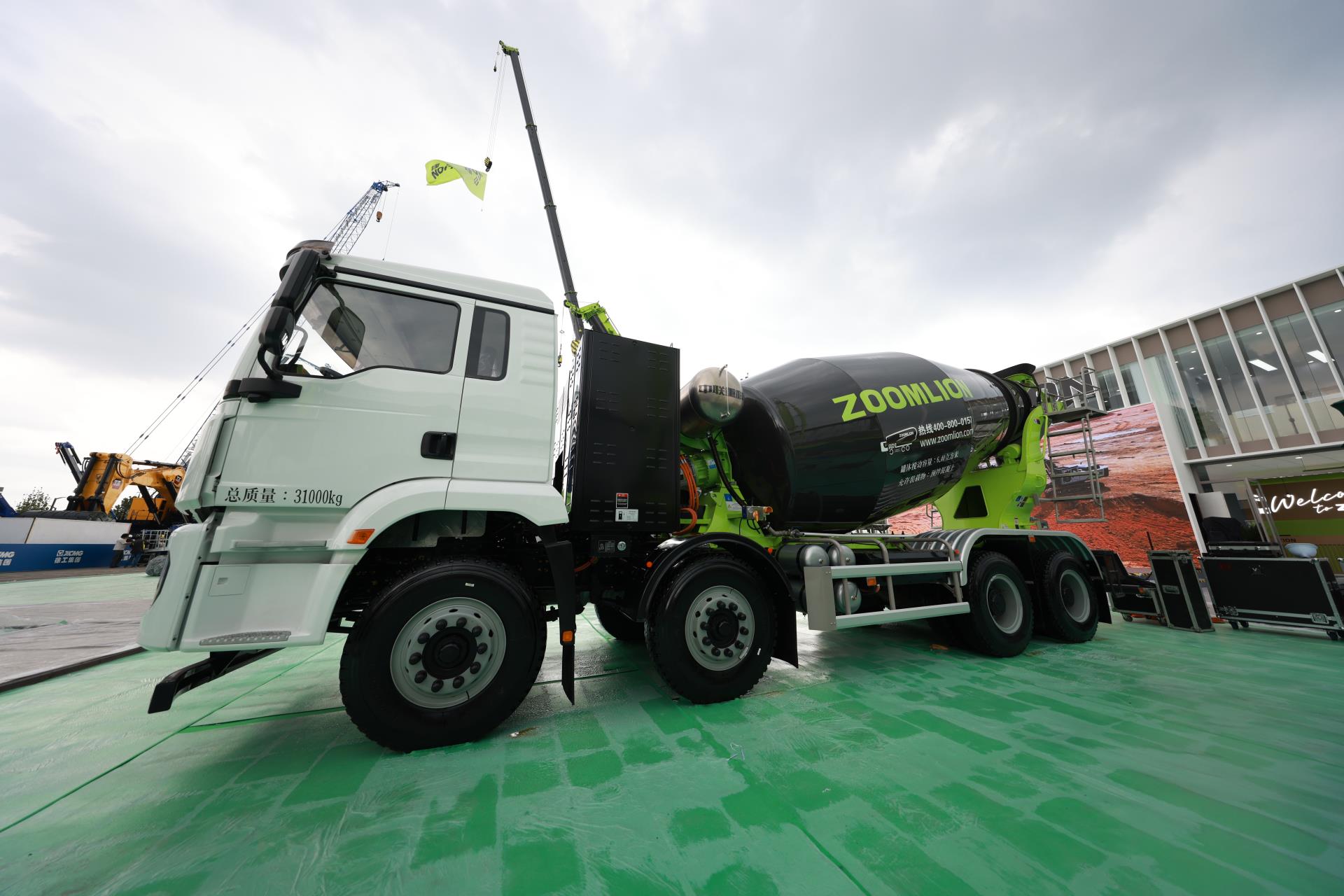 不遠處,中聯重科“凌冠”純電動攪拌車靜靜展示其零排放、低噪音的環(huán)保特性。工作人員介紹,該車綜合電耗僅1.5度/公里,支持雙槍快充,防水性能通過1.2米涉水驗證,確保在各種惡劣天氣下安全可靠運行,即使在城市夜間施工也可輕松滿足需求。其搭載的AI視覺盲區(qū)檢測系統等,可實現智能防撞與疲勞駕駛預警,觀眾紛紛感嘆其科技感十足。