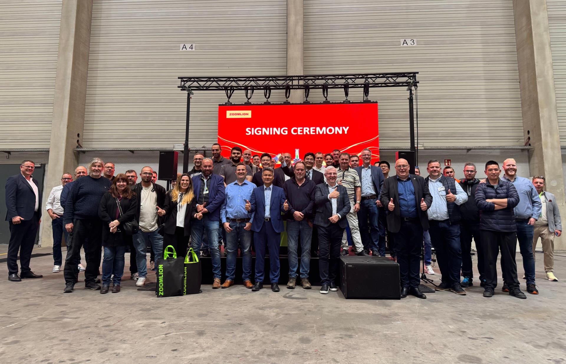 ?△中聯(lián)重科德國產(chǎn)品品鑒會(huì)現(xiàn)場(chǎng)簽約儀式