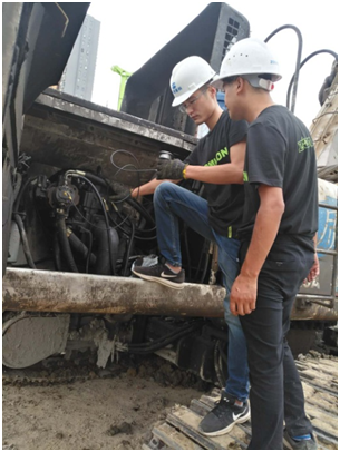 ??? 近日,基礎(chǔ)施工華南大區(qū)小分隊(duì)繼服務(wù)萬里行首站告捷后,迅速從廈門出發(fā),前往100公里以外的晉江項(xiàng)目地點(diǎn)。中聯(lián)重科極光綠設(shè)備在工地上格外耀眼,小分隊(duì)成員遠(yuǎn)在方圓百米外就已看到它高效施工的身影。抵達(dá)現(xiàn)場時,發(fā)現(xiàn)還有兩臺老涂裝設(shè)備依然“能量無限”,承擔(dān)著項(xiàng)目重任?!斑@是中聯(lián)重科2008年的旋挖鉆機(jī)ZR220A,是福建片區(qū)的**一臺旋挖鉆機(jī),至今仍然非常好用。中聯(lián)產(chǎn)品品質(zhì)真的很不錯?!?機(jī)手感慨道。