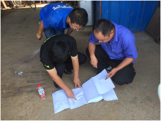 ▲針對(duì)設(shè)備問題服務(wù)小分隊(duì)的成員正在討論解決方案