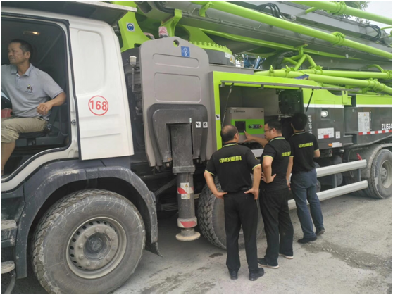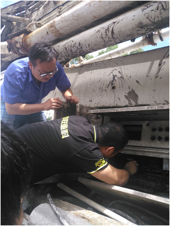 ▲小分隊(duì)正在為客戶檢修泵車(chē)