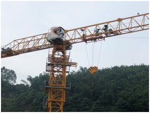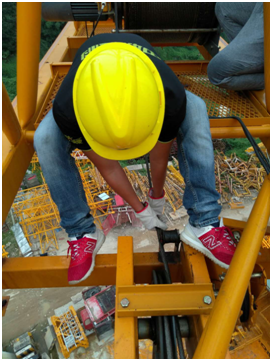 ▲小分隊(duì)成員與塔機(jī)師傅交談,仔細(xì)檢查設(shè)備的每個(gè)環(huán)節(jié)?