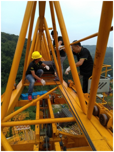 ▲小分隊(duì)成員在發(fā)現(xiàn)鋼絲繩跳槽問題后立馬進(jìn)行了處理