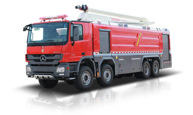 ? ? ? 該車選用德國原裝梅賽德斯奔馳Actros 4148? 8×4重載底盤改裝,裝備美國希爾RSD100消防泵,整車外形美觀、動力強勁、操作方便、作戰(zhàn)速度快、射程遠、流量大。