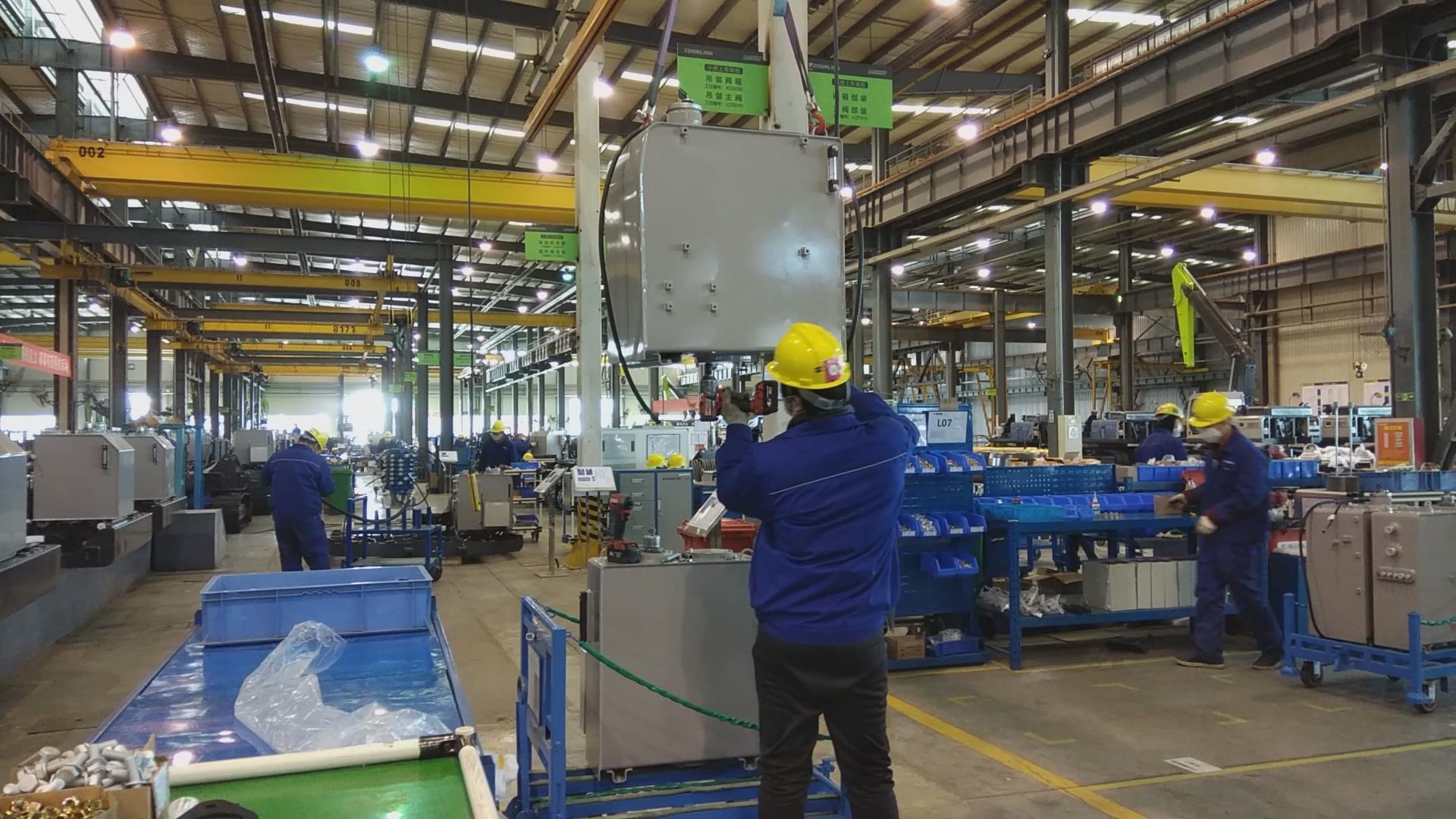 △2月19日 中聯(lián)重科土方機(jī)械分公司渭南工業(yè)園的工人們戴著口罩有序生產(chǎn)