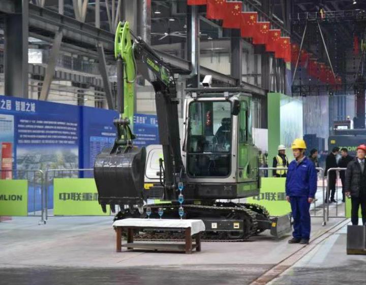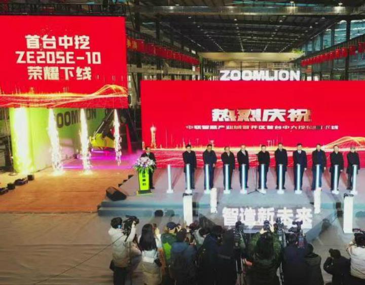 里程碑時(shí)刻!中聯(lián)重科智慧產(chǎn)業(yè)城挖掘機(jī)械園區(qū)首臺(tái)中大挖機(jī)下線