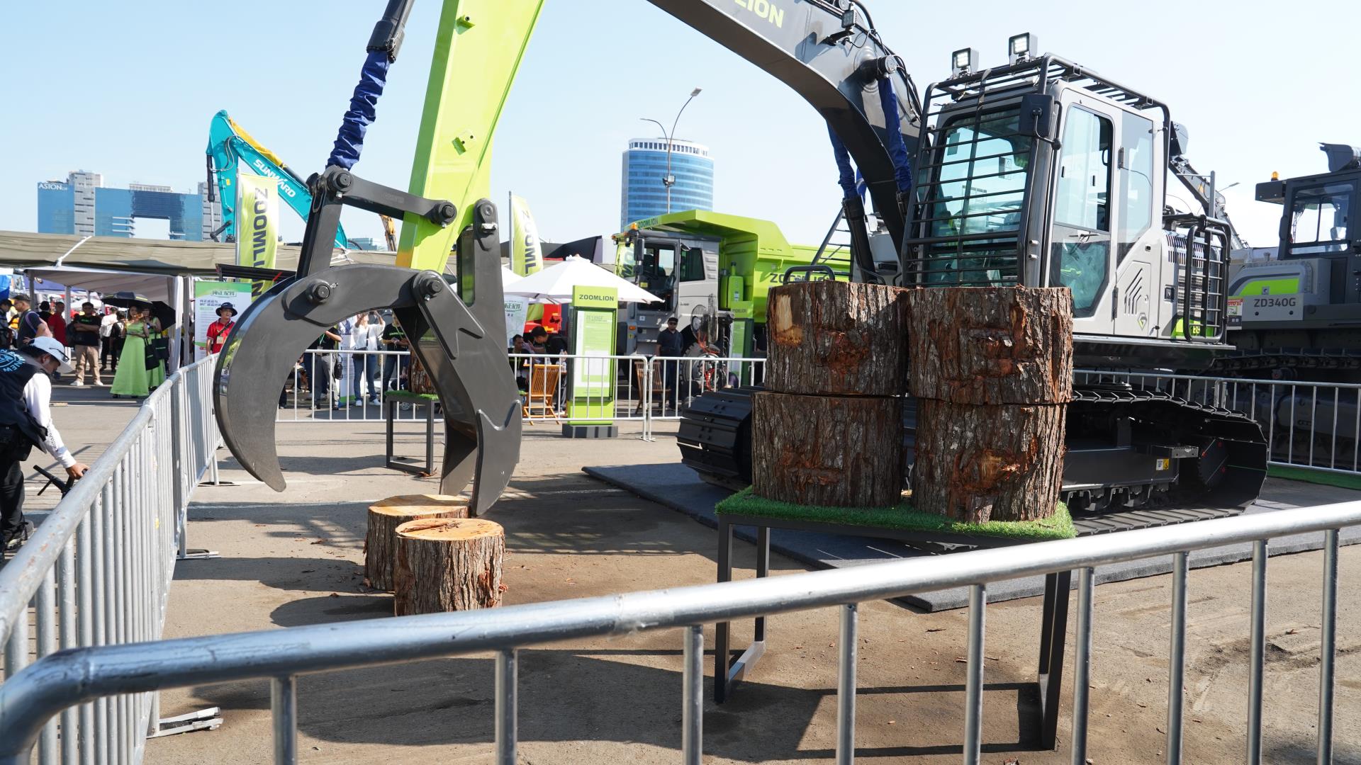 以此次展示的森林型挖掘機ZE135GF為例,其針對印尼當?shù)毓r對整機重量、抓斗容量、防護、程序做了定制化改進,包括對主板厚度加強、應(yīng)用負載動態(tài)自匹配技術(shù)和超低怠速系統(tǒng)、定制化生物燃油過濾等,具有高通過性和高穩(wěn)定性,工作效率也大幅提高。展會上,這款產(chǎn)品還進行了現(xiàn)場演示,伸臂、精準抓取、壘放,一系列動作一氣呵成,順滑的操作性能引來現(xiàn)場客戶的陣陣掌聲。