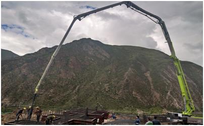 ▲中聯(lián)重科高精高效56米泵車在海拔4300米高原施工作業(yè)