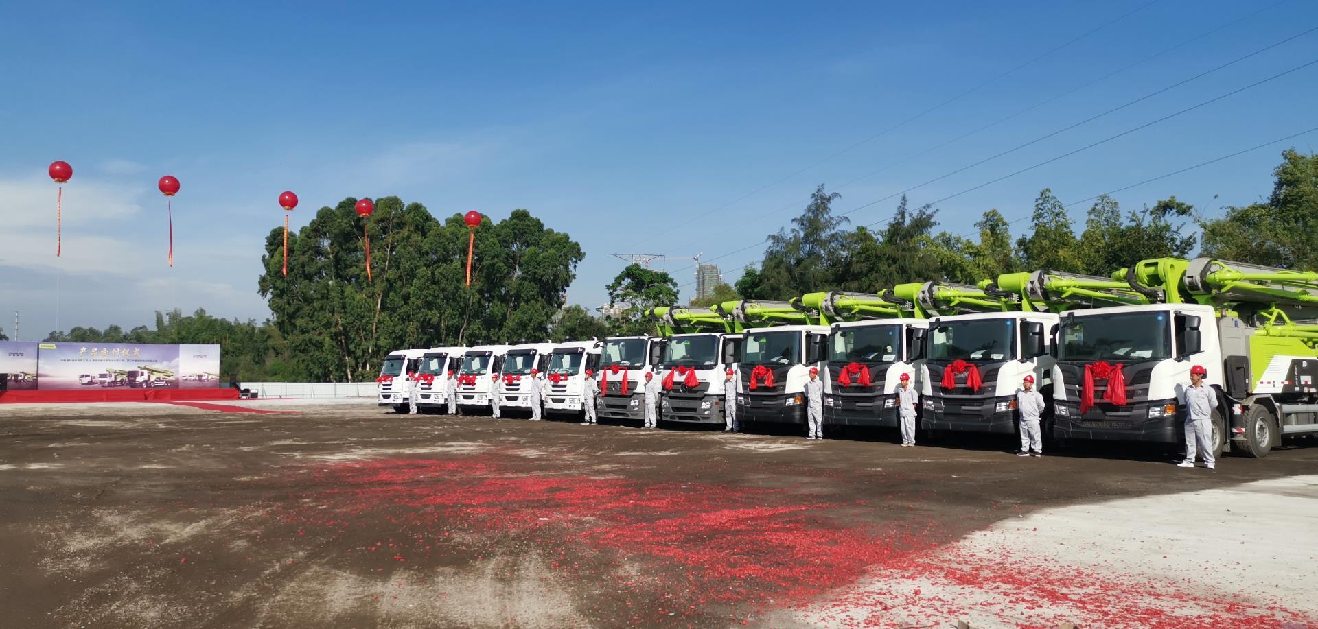 ▲交付儀式現(xiàn)場,中聯(lián)重科泵送精品雄姿