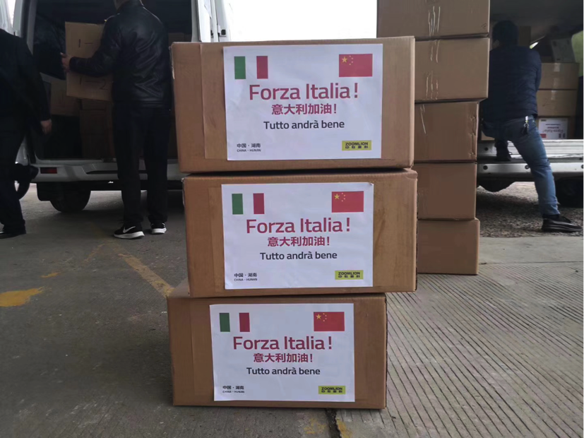 ? ?五天前,湖南省委省政府調(diào)撥中聯(lián)重科向意大利捐贈(zèng)的5萬(wàn)只口罩從長(zhǎng)沙出發(fā),并火速發(fā)運(yùn)至意大利,捐贈(zèng)給了意大利倫巴**大區(qū)負(fù)責(zé)應(yīng)急物資調(diào)配的部門(mén),馳援當(dāng)?shù)蒯t(yī)療一線(xiàn),為他們抗擊疫情提供了及時(shí)的幫助。