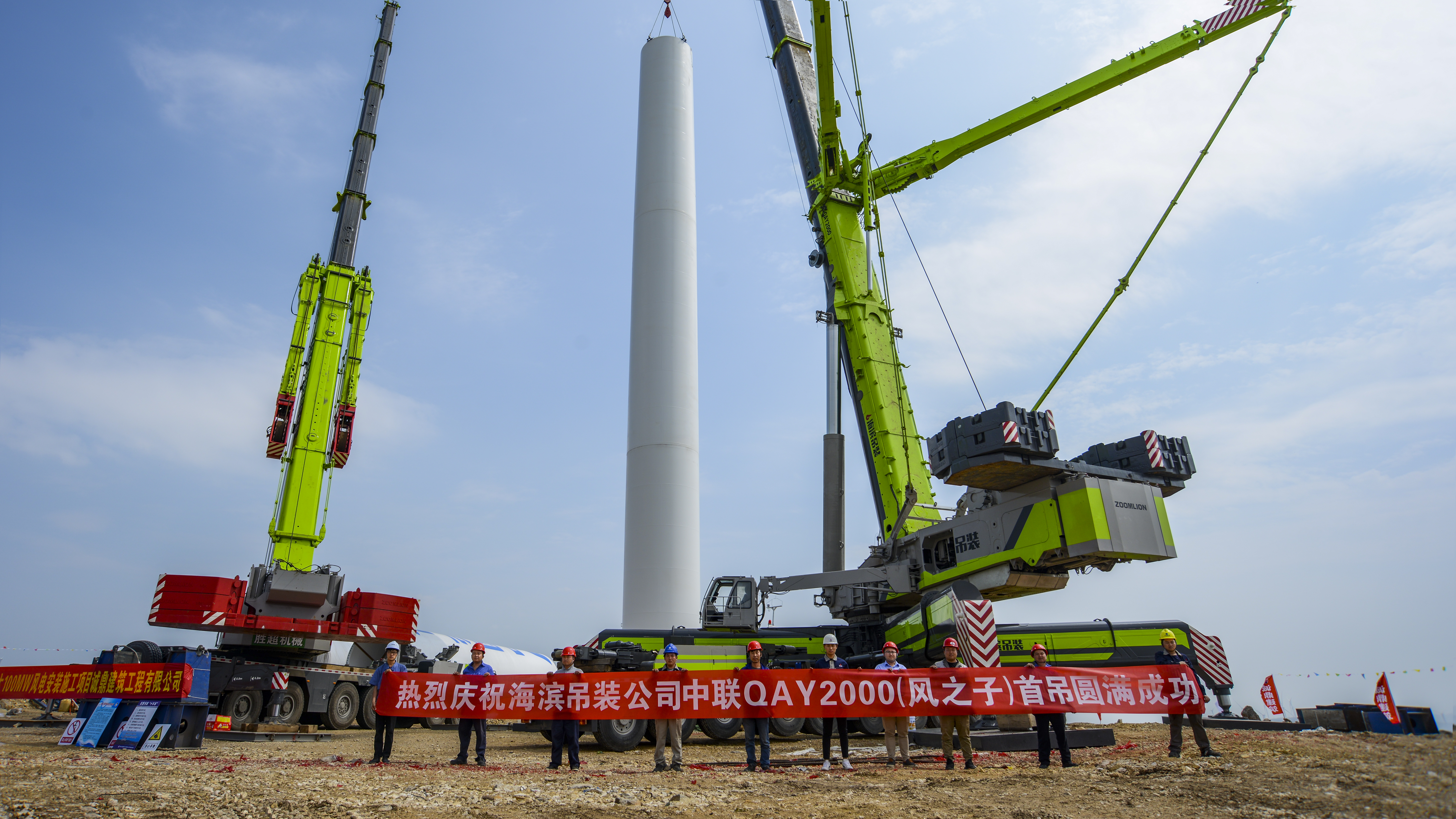 △中聯(lián)重科QAY2000全地面起重機山西朔州風(fēng)電場首吊圓滿成功