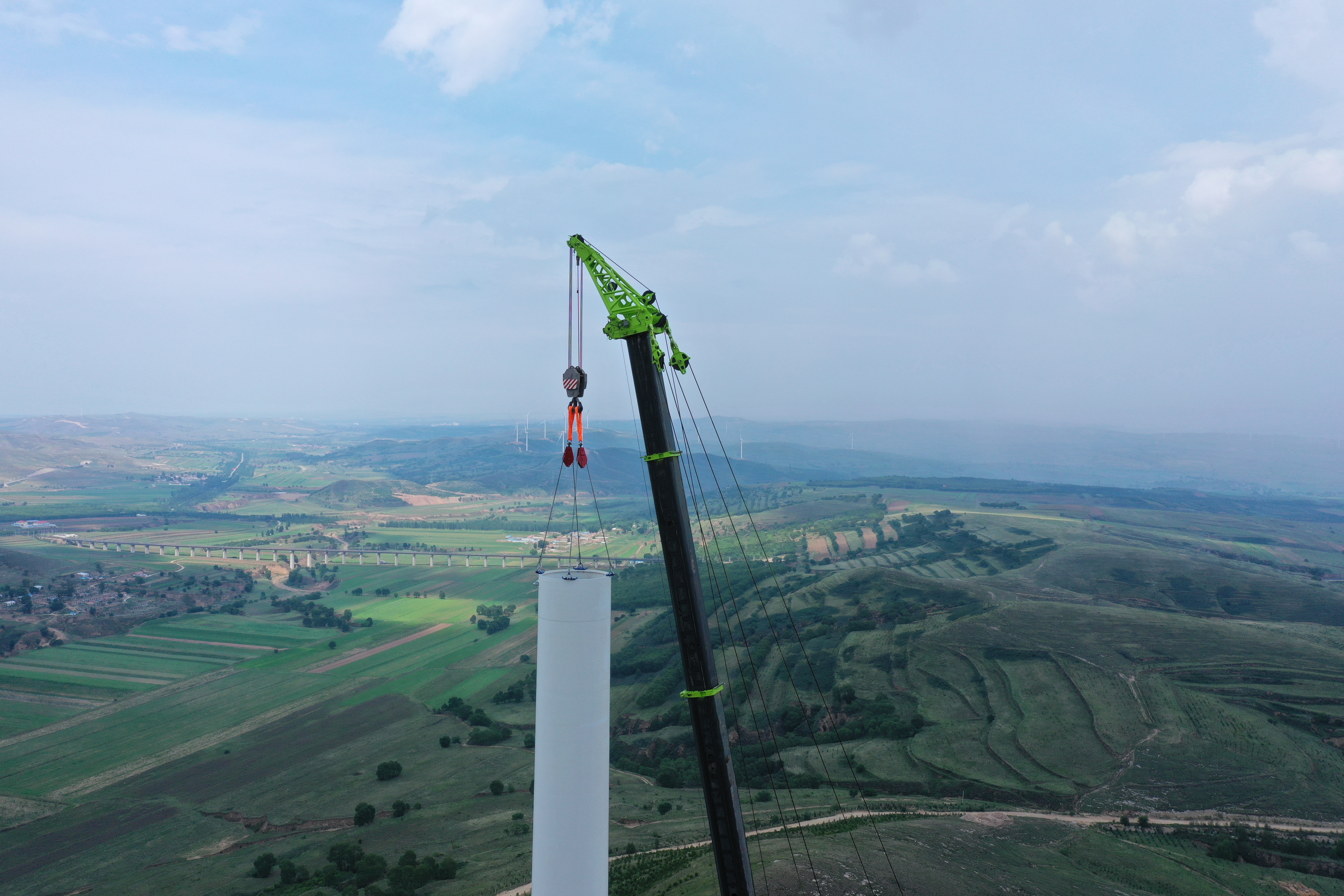 朔州市平魯區(qū)三面環(huán)山、海拔較高,素有“朔北雄城,塞外天險”之稱。近年來,隨著清潔能源發(fā)展的壯大,朔州平魯以豐富的風(fēng)力資源受到了風(fēng)電項目的重點關(guān)注,一座座風(fēng)力發(fā)電塔拔地而起傲立山頂,成為了平魯壯觀的風(fēng)景線。正在建設(shè)中的山西華電朔州平魯東平太100MW風(fēng)電安裝項目就坐落于此。而負(fù)責(zé)該項目31座風(fēng)力發(fā)電塔組裝工作的設(shè)備,正是中聯(lián)重科QAY2000全地面起重機。???