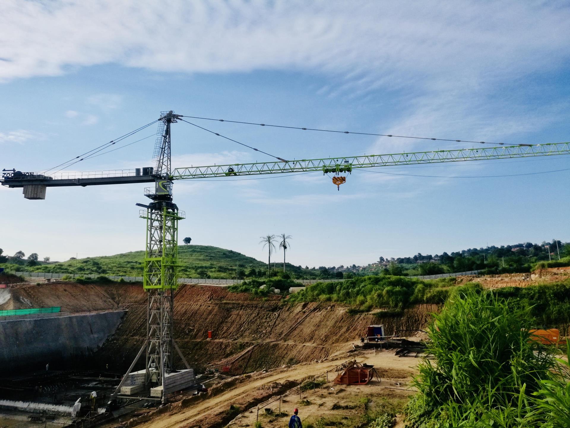 △中聯(lián)重科TC7052A-25型塔機(jī)在水電站項(xiàng)目施工現(xiàn)場(chǎng)