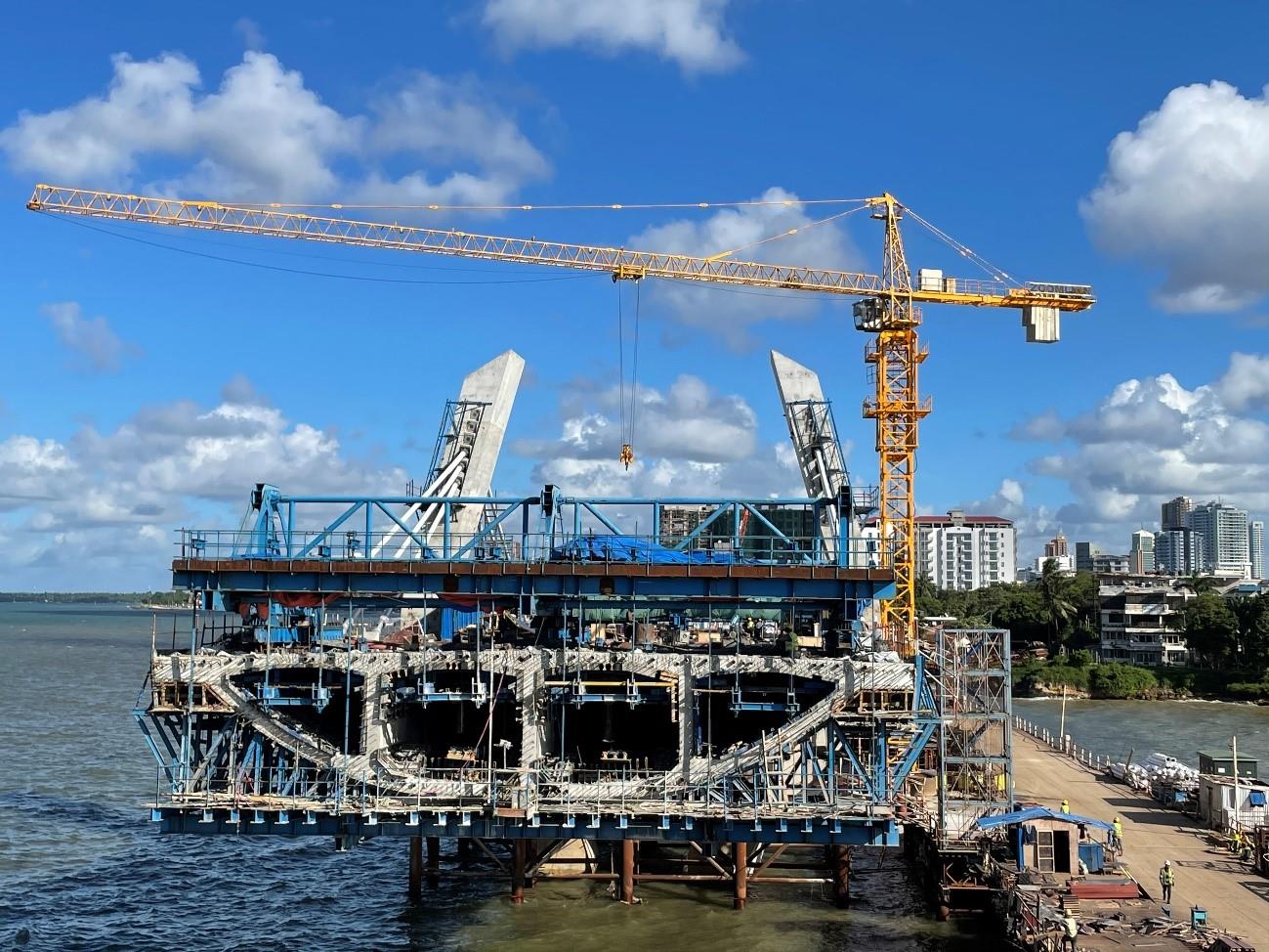 憑借著輕載高速、重載低速的技術(shù),中聯(lián)重科TC7013-10E塔機(jī)穩(wěn)定、高效地完成了新塞蘭德跨海大橋橋墩的每一次吊裝。2021年,大橋中塔柱塔頂合龍段混凝土順利澆筑完成,至此,五個(gè)主墩塔柱全部封頂。這預(yù)示著中聯(lián)重科兩臺(tái)塔機(jī)圓滿完成了主要的橋墩吊裝任務(wù),為大橋今年建成通車奠定了堅(jiān)實(shí)基礎(chǔ)。