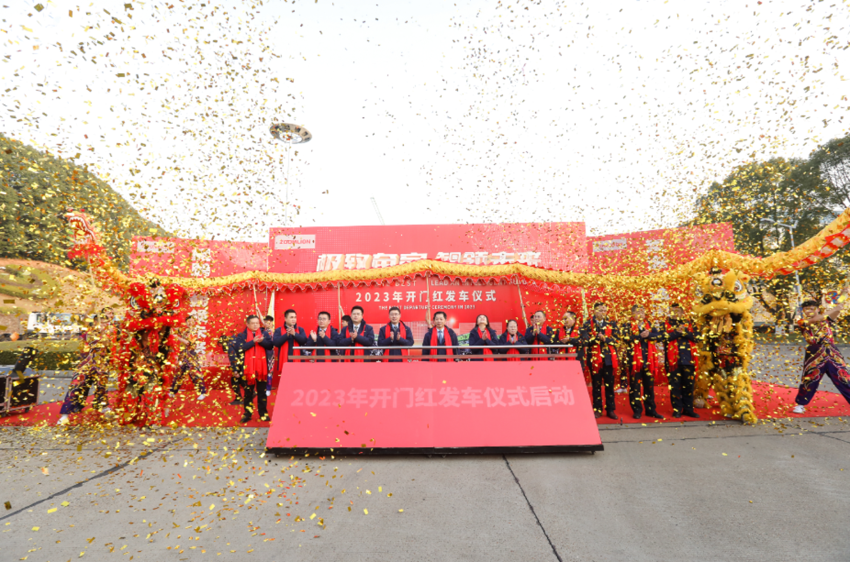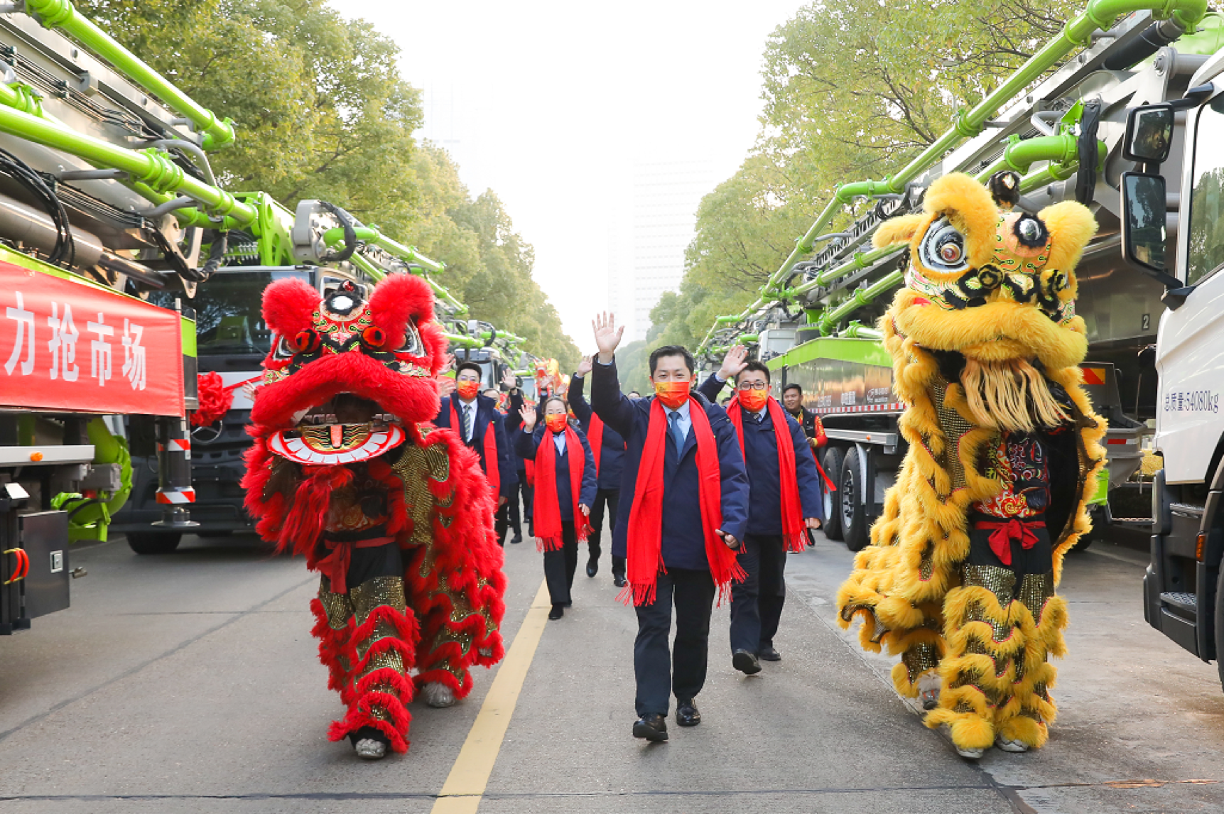 ????? 1月27日,正月初六上午8:08,中聯(lián)重科麓谷工業(yè)園龍獅齊舞、鑼鼓喧天,在一片熱鬧喜慶的氛圍中,中聯(lián)重科混凝土泵送機(jī)械新春“開(kāi)門紅”暨全球發(fā)車儀式隆重舉行。