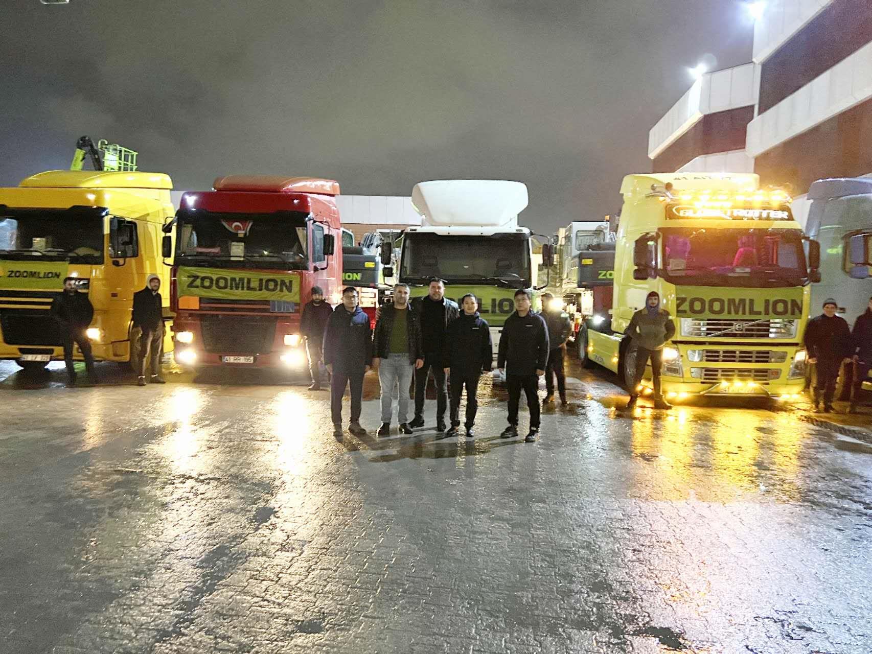 地震發(fā)生后,根據公司指示,中聯(lián)重科土耳其子公司立即派出由專業(yè)服務工程師、機手組成的救援團隊,攜帶災區(qū)急需的電熱毯、應急藥品、食品等物資,與首批5臺挖掘機設備連夜啟程,趕往災區(qū)。